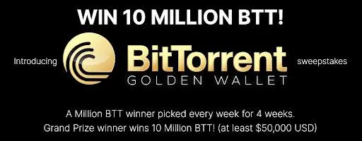 BitTorrent Announces Golden Wallet Sweepstakes 10 Million Btt Giveaway