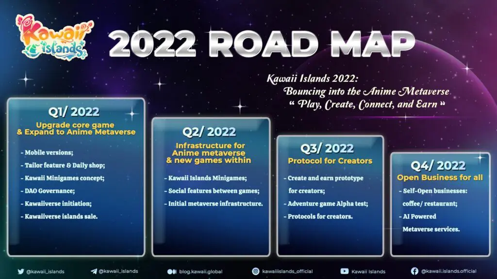 In Q3 2022, “protocols for creators” will be ready. Creators and anime artists around the world can use these protocols to create anime fashion, characters, content and share with the Kawaiiverse community to earn their privilege, appreciation and cryptocurrencies.
