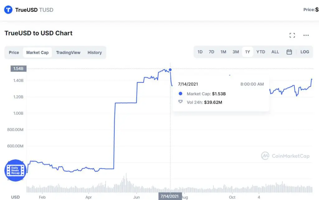 VI. A new record high: TrueUSD’s market cap topping $1.5 billion