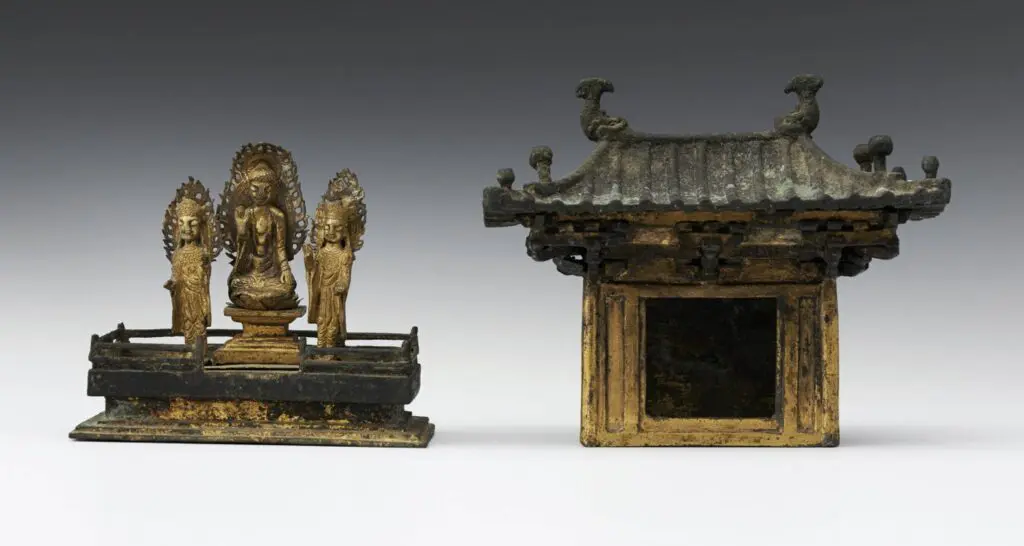 National Treasure #73: 금동삼존불감 – Portable Shrine of Gilt-bronze Buddha Triad