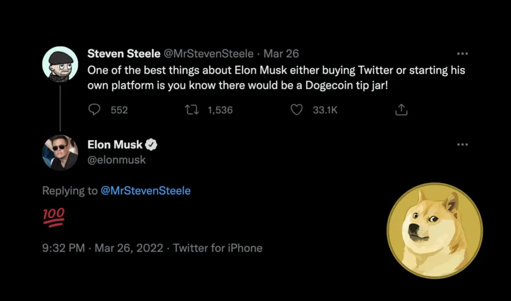 This could range from a number of ideas such as advocating for Twitter to accept social tips in more cryptocurrencies (such as Dogecoin), to moving the entire Twitter base to an open social protocol like DeSo (Decentralized Social).