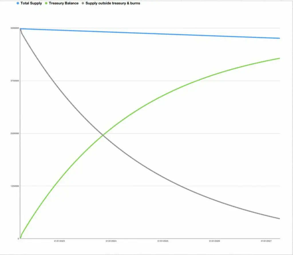Currently, the protocol registers 1.9 trillion staked tokens and another 1.567 trillion that were burnt. The project’s increasing popularity has led to a steady surge in treasury volume. Simply put, an increment in activity takes more tokens from the general circulation into the treasury.