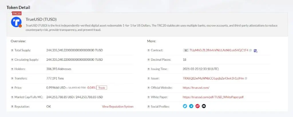 TrueUSD (TUSD) is the first independently-verified digital asset pegged 1-for-1 to US Dollars. The stablecoin uses multiple banks, escrow accounts, and third-party attestations to reduce counterparty risk, provide transparency, and prevent fraud.TUSD offers liquidity on dozens of leading exchanges, DeFi protocols and is supported by major OTC desks. TUSD also supports nearly instant minting and redemption speeds through the Silvergate Exchange Network (SEN) and PrimeX by PrimeTrust.