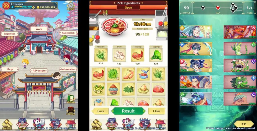 Fly Penguin Inc. developed Menya Dragon Ramen, a game in which users run a ramen shop while selling ramen made from ingredients acquired by defeating monsters in dungeons, incorporating both role-playing and shop simulator elements within the game.