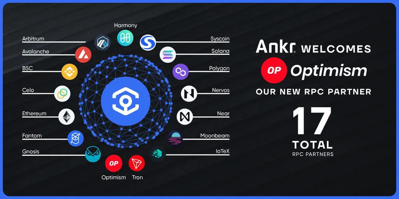 Ankr, one of the world’s fastest-growing Web3 infrastructure providers, is thrilled to announce that it has become an RPC (Remote Procedure Call) provider to Optimism, a blazing-fast and low-cost Layer-2 scaling solution for the Ethereum blockchain. Following this partnership, Ankr is now an RPC provider to 17 blockchains including Ethereum, BNB Chain, Solana, and Avalanche. An RPC enables various applications to interact with the blockchain.