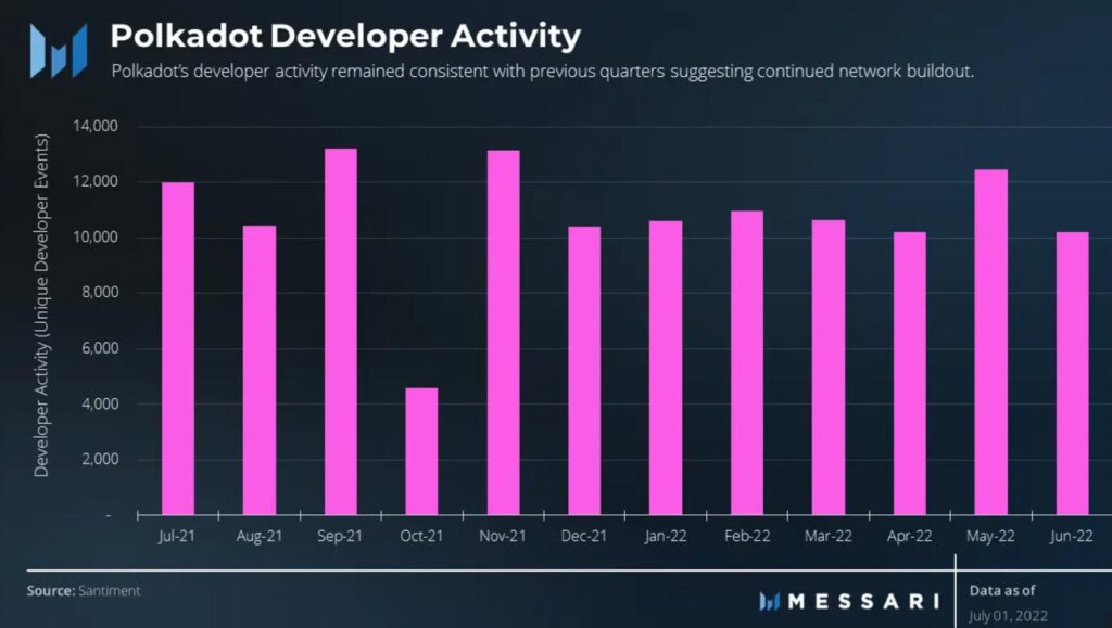 The report adds: “During the second quarter of 2022, strong developer activity has been Polkadot’s plus point. As observed in available data, developer activity scored an average of 11,000 developer activity events per month. Evidently, Polkadot’s developer activity remains among the strongest in the crypto market.”