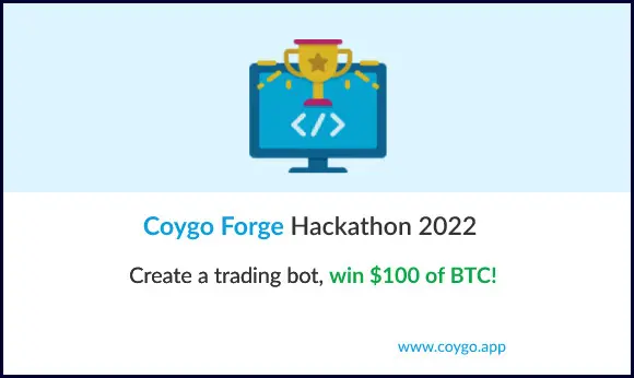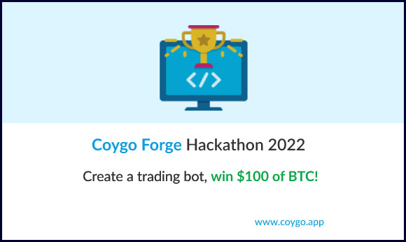 Coygo Forge, a powerful platform and framework for coding custom crypto trading bots using JavaScript, is hosting an incentivized hackathon. Teams or individuals that successfully submit their own trading bot during the event could win $100 of ETH or BTC. Participants are welcome to enter multiple submissions and could win more than once.