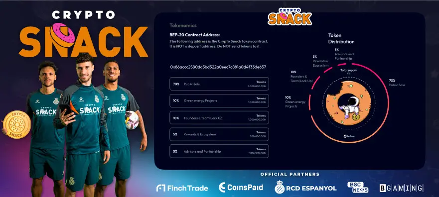 Based on a shared vision, key partnerships, and a dynamic team of Snackers that is rapidly growing, the Crypto Snack community’s purpose is to bring the benefits of decentralized finance into everyday transactions, allowing a smooth and effective process. The SNACK tokenomics plan adds interesting environmental sustainability goals, with the aim of making the project carbon-neutral and in the future carbon-negative.
