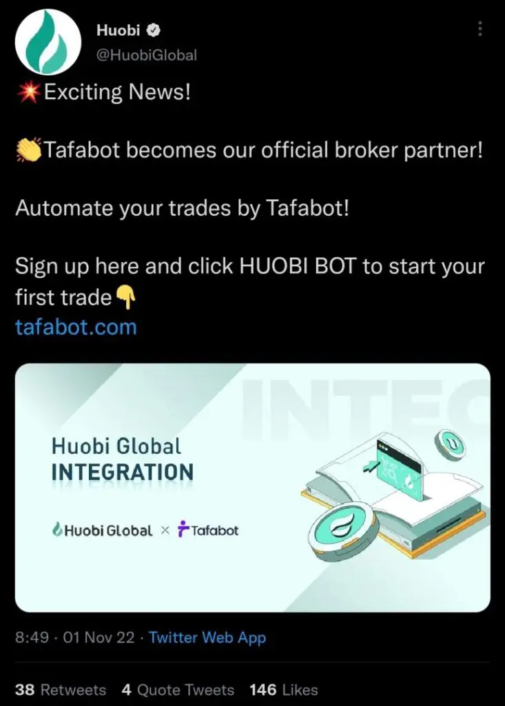 HUOBI ANNOUNCES PARTNERSHIP WITH TAFABOT
