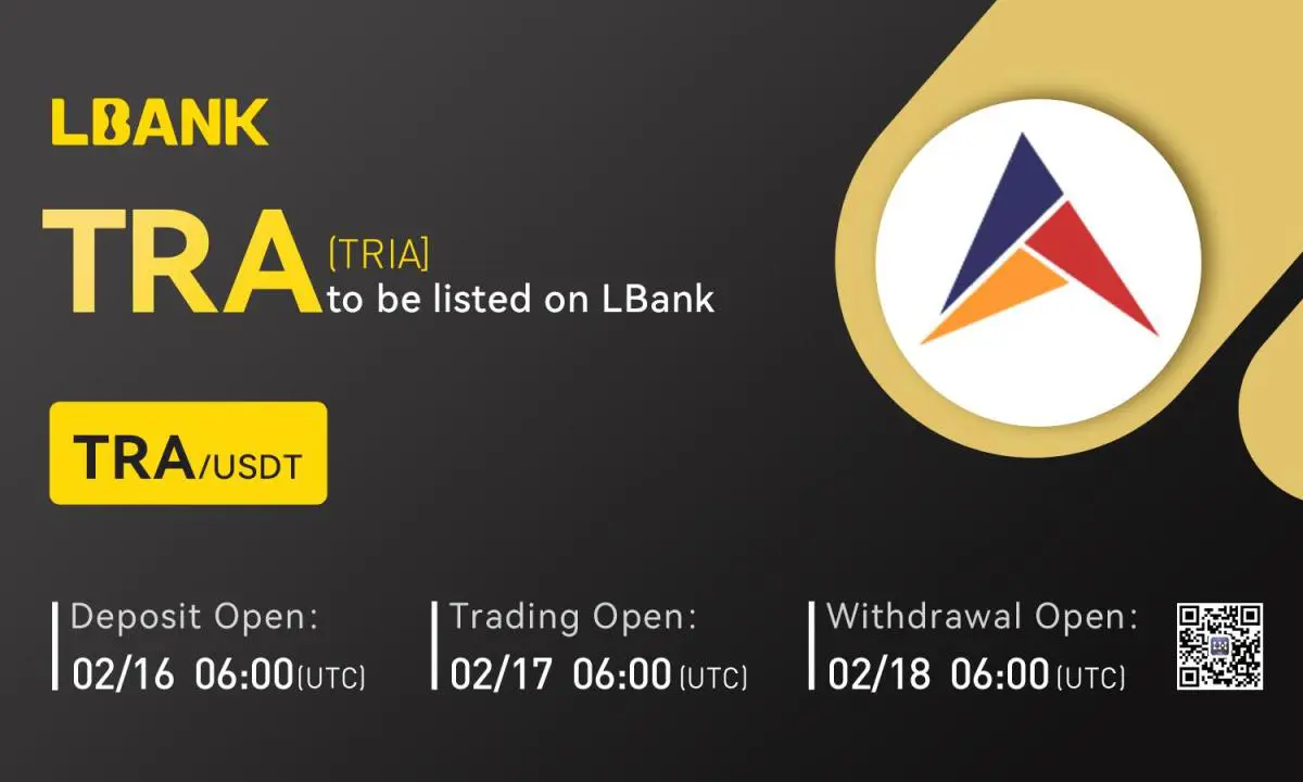 LBank Exchange, a global digital asset trading platform, will list TRIA (TRA) on February 17, 2023. For all users of LBank Exchange, the TRA/USDT trading pair will be officially available for trading at 6:00 UTC on February 17, 2023.