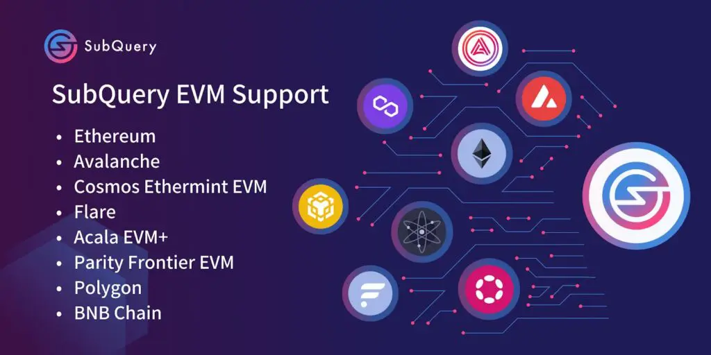 SubQuery’s decentralised data indexing solution provides developers with the tools needed to easily organise and query on-chain data for their protocol and applications. Abstracting the backend, SubQuery provides a custom API and lets developers focus on product development and user experience rather than building their own indexing solutions. The latest integration builds on SubQuery’s existing Ethereum Virtual Machine (EVM) support for other networks including Avalanche, Flare, Cosmos (Ethermint) and Polkadot (FrontierEVM).
