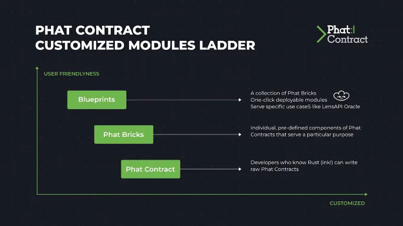 The ability to deploy applications without the need for coding greatly enhances application deployment efficiency and productivity. Phat Contracts provide predefined components (Phat Bricks) and customizable templates (Blueprints) to effortlessly construct efficient dApps.