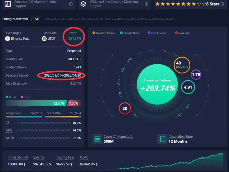Source: ATPBot, 40-month backtest profit 879%, max drawdown 33%