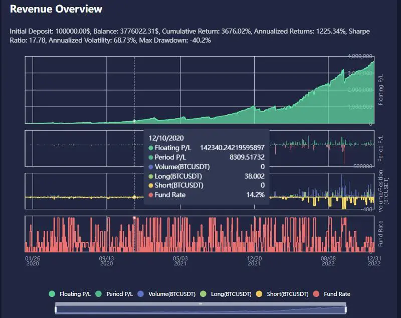 Image Source: ATPBot, 3 years backtest profit 3676%, max drawdown 40%, Annualized rate of return 1225%