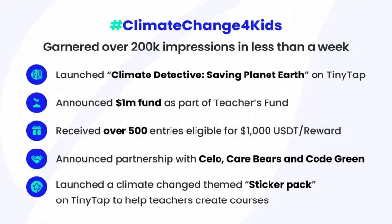 The partnership follows the successful launch of the Open Campus “Climate Change for Kids” initiative, which aims to foster knowledge and awareness of climate change among the younger generation. The #ClimateChange4Kids campaign, first launched on X (formerly Twitter), has received over a combined 200,000 impressions. The initiative includes a proposal for a US$1,000,000 fund incentivizing teachers to create climate change courses; the “Living Stories” project that encourages communities to share their experiences and climate-conscious practices; a climate-themed sticker pack developed by TinyTap to aid educators in course creation; and a new game called “Climate Detectives: Saving Planet Earth” available for free on TinyTap.