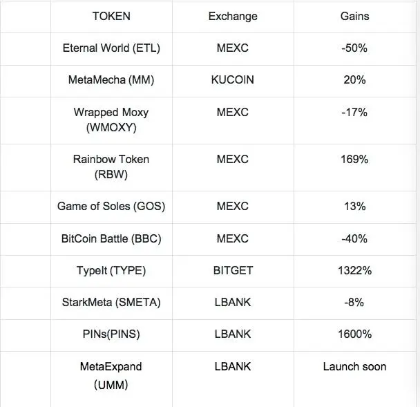 Prominent Twitter KOLs like @Rocky_Bitcoin have predicted that GameFi will be one of the major directions for the next web3 cycle. Based on observations during a personal visit to Kuala Lumpur, @Rocky_Bitcoin asserted that Q4 could witness a significant boom in GameFi. GameFi tokens listed on exchanges recently have generally performed well. For instance, MetaMecha on KUCOIN surged by 20%, Typeit on Bitget and LBANK soared by 1,322%, and PINS on LBANK also saw a 1,600% increase.