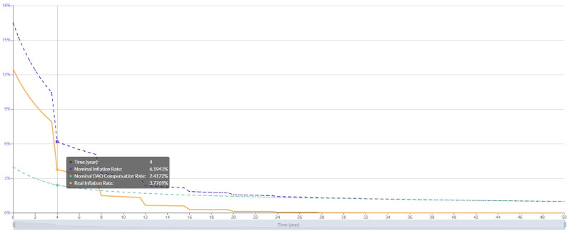 In nominal terms, the base issuance will drop from 4.2 billion to 2.1 billion CKB per year, whereas the secondary issuance, which is uncapped and follows a fixed emissions schedule, will remain unchanged, 1.344 billion CKB annually.