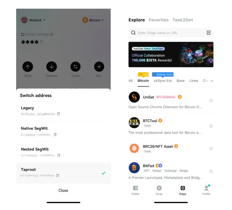On the application level, Bitget Wallet recently introduced a dedicated Bitcoin zone within its DApp browser, showcasing dozens of popular Bitcoin ecosystem applications. This includes useful tools such as UniSat, BTCTool, OrdSpace, as well as NFT markets like BitPad and Ordinals Market. Users may also easily search for and access specific DApps using DApp URLs.