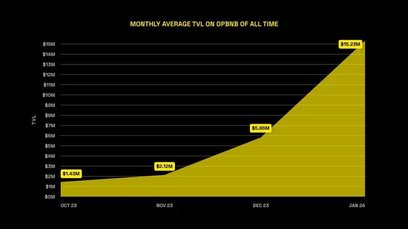 Meanwhile, opBNB’s TVL has grown from $1 million in October 2023 to over $15 million currently. Multiple factors, such as BNB Chain’s TVL Incentive Program and strong TVL performance across prominent DeFi projects contributed to the increase of opBNB’s TVL.