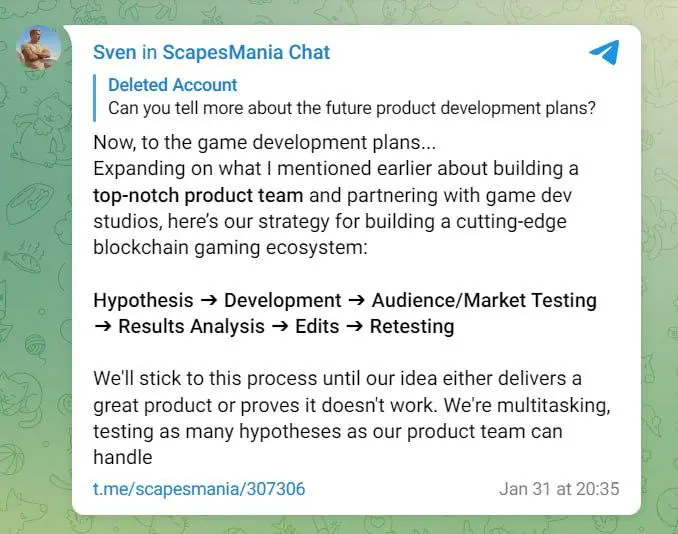 During the above-mentioned AMA session, ScapesMania’s CEO discussed the project’s plans. The team is about to go into full-scale development, which requires a lot of time, effort, and expertise. ScapesMania actively attracts talent by partnering with experienced game development studios and assembling an in-house product team.