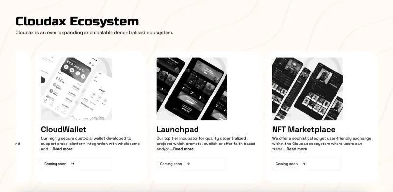 - Cloudax Launchpad: An incubator for pioneering Web3 projects, fostering growth and scalability.