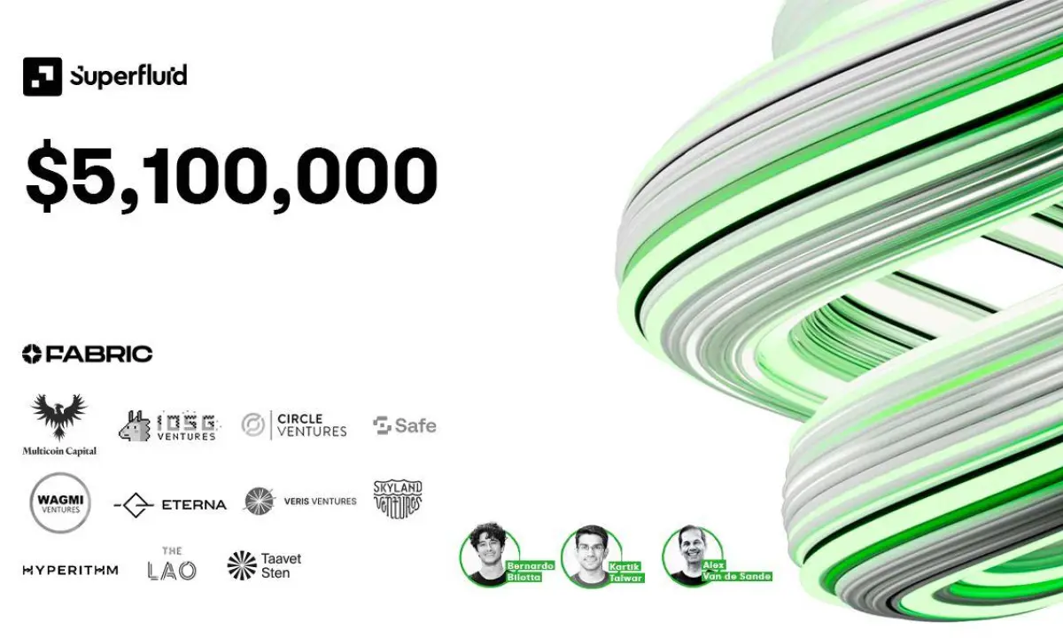 Superfluid, the leading asset streaming protocol that brings subscriptions, salaries and rewards to DAOs and crypto-native businesses, today announced a $5.1M strategic round led by Fabric Ventures with participation from Multicoin Capital, IOSG Ventures, Circle Ventures, Safe Foundation, WAGMI Ventures, Eterna Capital, Veris Ventures, Skyland Ventures and Hyperithm. Notable angel investors also include The LAO, Bernardo Bilotta, Alex Van De Sande, Kartik Talwar, and Taavet+Sten. This round brings the company’s total financing to date to $14.1M. The new funds will be used to support Superfluid’s growing developer ecosystem, expand the core team, and launch Distribution Pools.