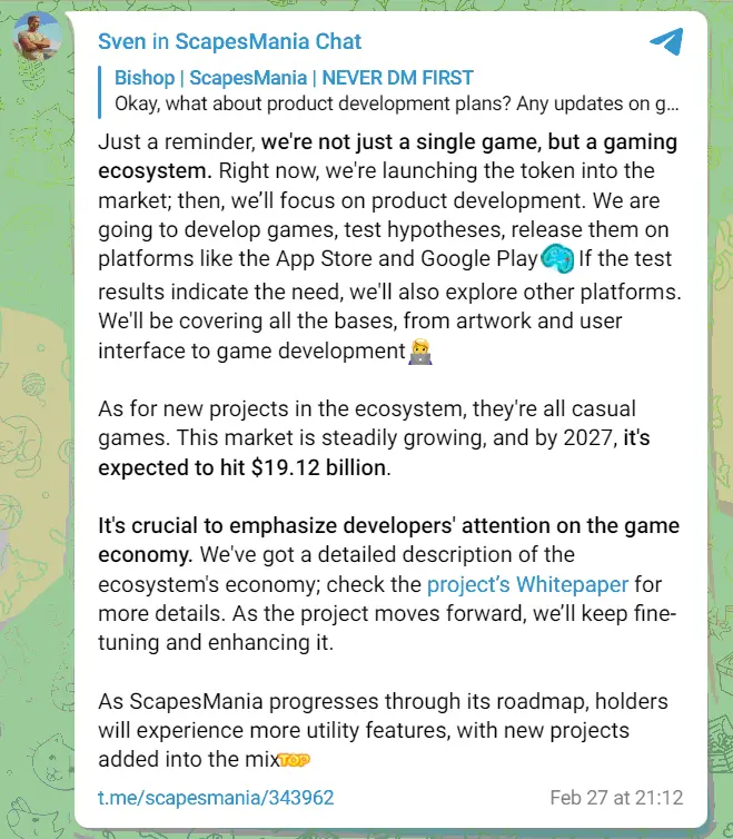 As the casual gaming sector is projected to grow significantly, ScapesMania positions itself as a key player in this expanding market. The team is now focused on product development, with several key milestones ahead, including the alpha release of its pilot game.