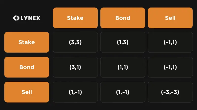 The term “ve” in “ve(3,3)” stands for “vote escrow,” indicating that users can vote when they lock their tokens. The “(3,3)” part is based on the game theory model, developed by Olympus DAO, suggesting that the biggest payoffs in a 3×3 system, where users can stake, bond or sell, arise when all parties align on staking.