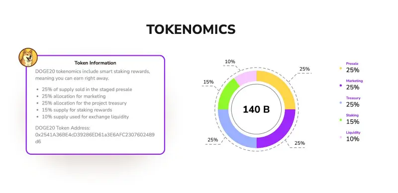 Striving for sustained success, Dogecoin20’s pioneering approach to tokenomics is one of its most notable strengths.