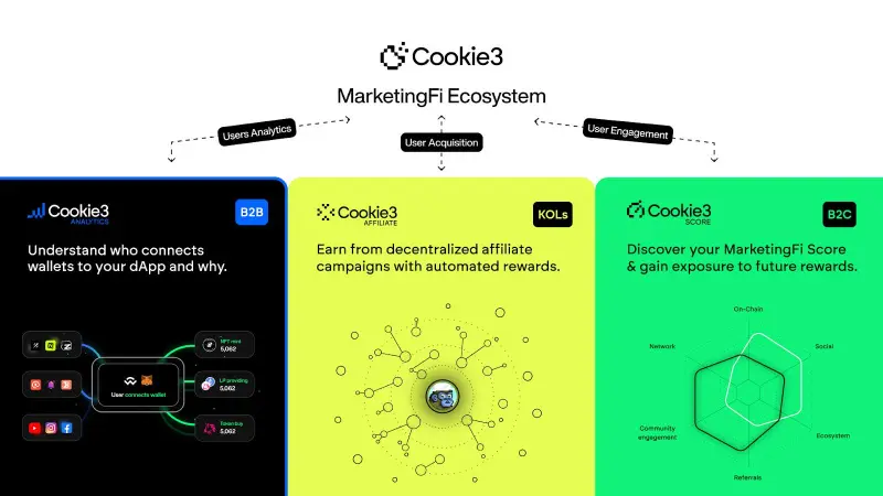 Cookie3 pioneers MarketingFi with an AI Data Layer— a transparent marketing economy unlocking value for Web3 users, creators, and businesses, with over 170 dapps such as Kyber Swap, Mantle, Polkastarter, Linea, GameSwift, eesee, and Insomnia Labs already using Cookie3 technology. To realize its mission, Cookie3 is building a set of MarketingFi platforms and Web3 AI marketing solutions that connect projects with the right audiences, creating profitable opportunities for both. Cookie3 uses off- and on-chain analytics alongside a Web3 AI data layer to ensure only valuable user and project interactions benefit from the MarketingFi ecosystem. In an economy where lines between business owners, investors, and consumers are blurred, effective marketing becomes collaborative, and value flows freely between all stakeholders. Backed by top institutional investors such as Spartan Group (Lead Investor), GSR, Big Brain Holdings, CMT Digital, Hartmann Capital, Jsquare, Orange DAO, Polkastarter, and Chain GPT, Cookie3 fills the gap where Web2 marketing comes short.