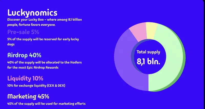 Lucky Boo’s tokenomics reveal a dedicated allocation of 40% of the token supply for airdrop rewards, showcasing the team’s commitment to engaging the community and driving excitement. This strategy aims to ensure active participation and potential rewards for Lucky Boo Token holders. Coupled with focused marketing efforts, this allocation underscores the team’s ambition to leave a lasting impact in the meme coin space, promising exciting developments and rewards for participants.