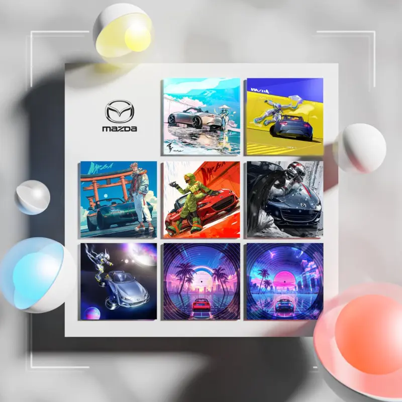 Introducing the Japanese automotive company Mazda’s iconic NFT art debut in Yoki Origins! This collection heralds a new era of communication and storytelling for Mazda in the digital realm. With symbolic significance, it’s not just a first step but potentially the start of a captivating series. Infused with Japanese aesthetics, the NFTs feature Mazda’s iconic MX-5 MIATA, embodying a unique subcultural essence.