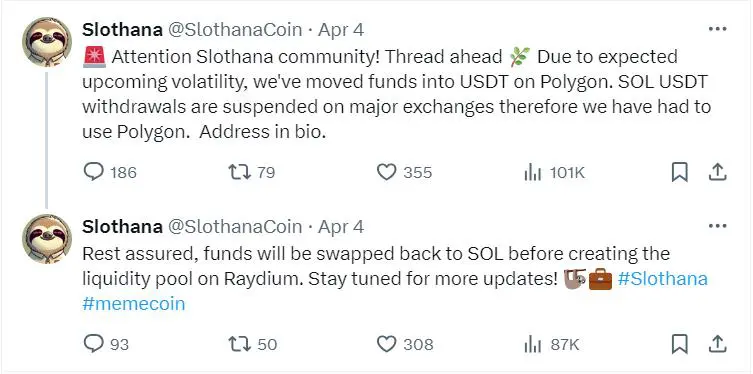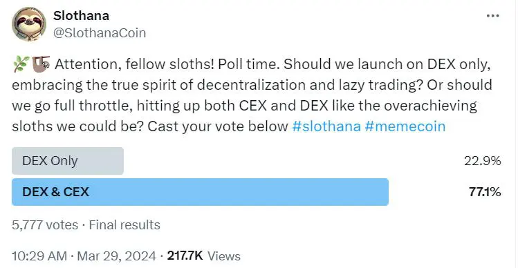 With 14,000 followers on X, all the updates on the project are communicated by the team through the official Slothana page.