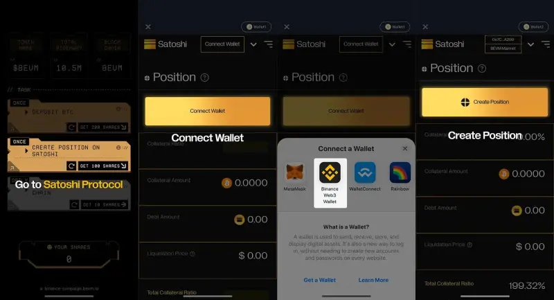 By using Binance Wallet to complete tasks like bridge to BEVM, and create positions on Satoshi Protocol, you’ll be eligible to share the rewards.