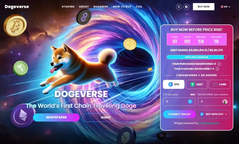 Dogeverse is a new meme coin launching across six leading smart contract-enabled blockchains. It is currently undergoing a presale where it has introduced a staking mechanism, encouraging users to lock up their tokens for passive rewards.