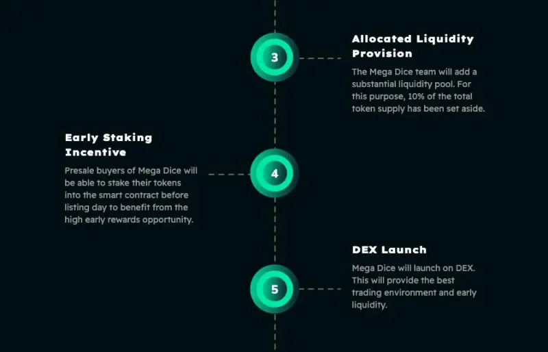 DICE holders will also gain access to limited-edition NFTs redeemable for special privileges, a 25% revenue share referral program, early bird bonuses, and full integration with the Mega Dice platform.