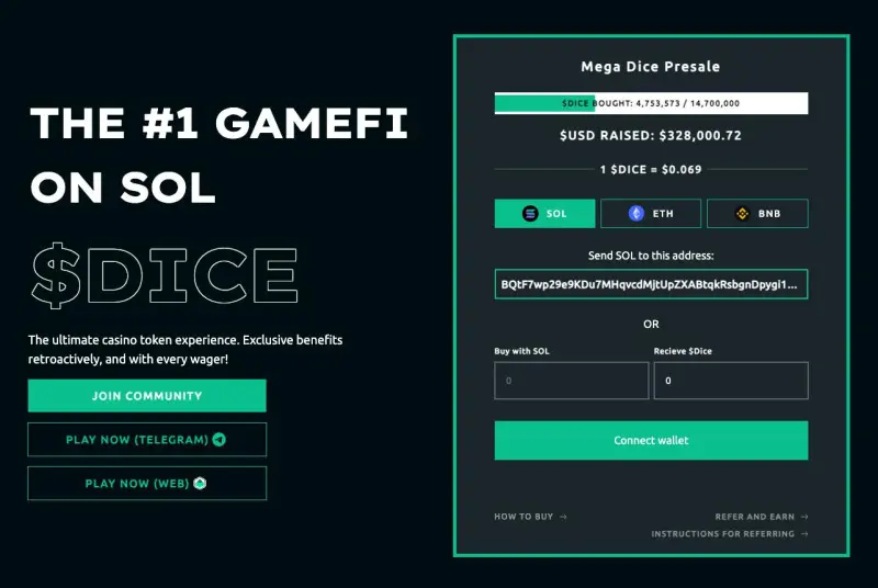 Its native token $DICE is now on presale, announced to the public on April 17th with over $300,000 raised so far.