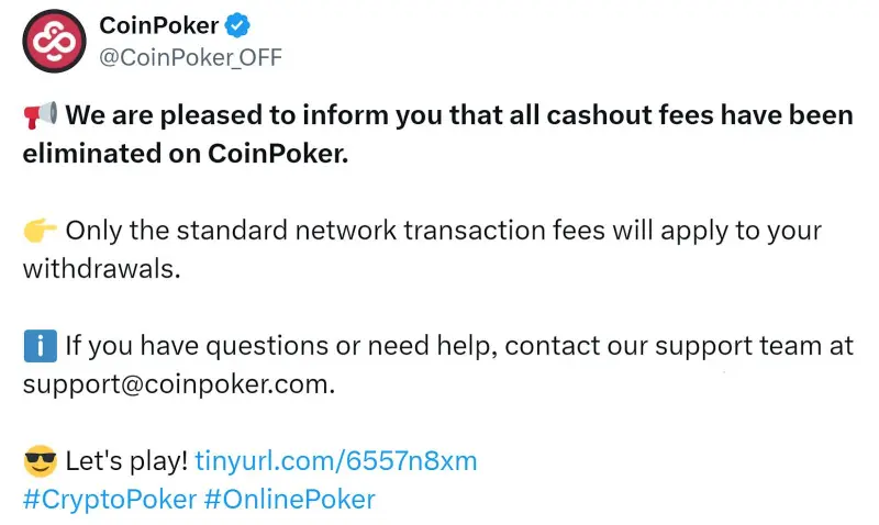 CoinPoker, the world’s largest cryptocurrency poker platform, has launched its annual Crypto Series of Online Poker (CSOP) Spring tournament series while also removing all Cashout Fees as announced by the team on X:
