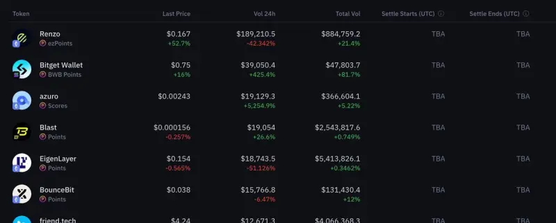 Whales Market encompasses three main features: a Pre-Market, OTC Market, and Points Market, allowing users to trade a variety of value-tagged assets including tokens, airdrop shares, and points. Since its listing on the Points Market on Whales Market, BWB Points has ranked second in 24-hour trading volume, outperforming even popular projects such as Blast, EigenLayer, and friend.tech