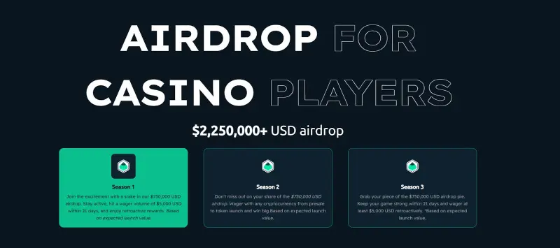This airdrop will be split across three seasons, each distributing $750,000 worth of DICE tokens. The first season kicks off the airdrop, rewarding players who stay active and hit a $5,000 wager volume within 21 days.