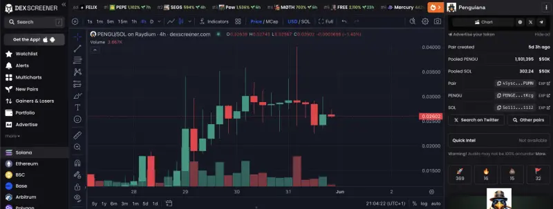 The Penguiana project, a penguin-themed meme coin built on the Solana blockchain, has achieved a remarkable milestone, hitting an all-time high fully diluted valuation of $4 Million and currently sitting at a market cap of over $2.5 million, according to Dexscreener.