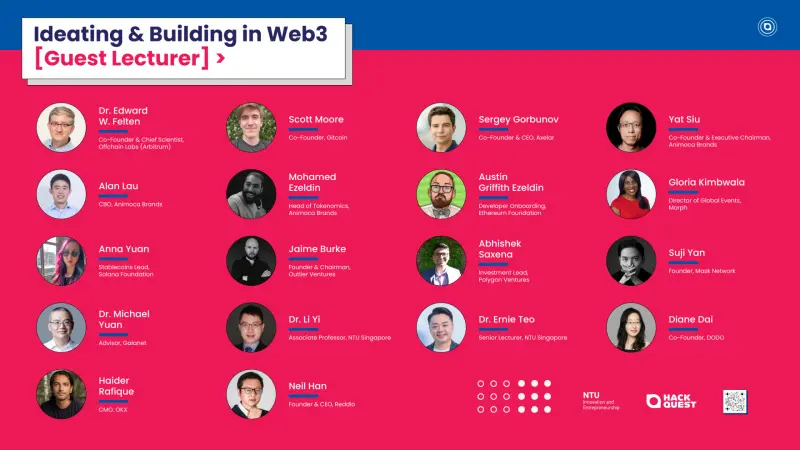 Jointly developed by HackQuest and NTU Singapore’s Innovation and Entrepreneurship initiative (NTU I&E), the new MOOC “Ideating and Building in Web3” will see participants learning from Web3 experts, entrepreneurs, academics and venture capitalists in real-time online sessions, unlike the usual MOOCs which are pre-recorded and taught by a single lecturer.
