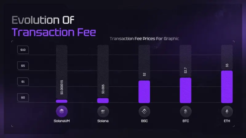 - TPS: Ethereum-100, Solana- 1500, Binance Smart Chain-1600, Solana VM- Up to 5000