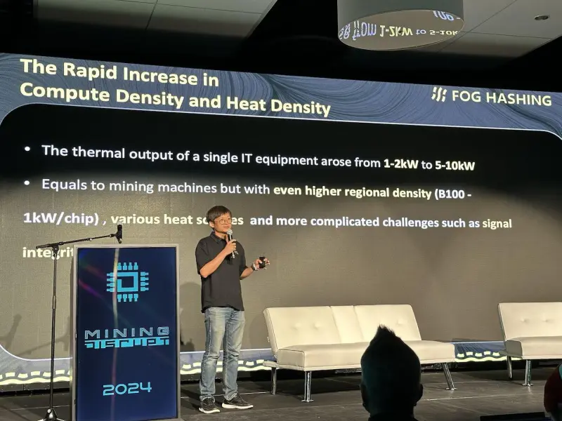 With the rapid development of artificial intelligence and the increasing demand for computing power, FogHashing are entering a new era with extremely high requirements for computing capabilities. In his speech “Cooling for The Compute-Intensive Era,” Paul pointed out that the boundaries between AI computing and mining are becoming increasingly blurred, and the reduction of AI chip costs indicates the trend of integration between AI computing and mining in the future. Faced with the limits of chip manufacturing processes and the challenges of heat levels, cooling technology has become the key to enhancing computing power.