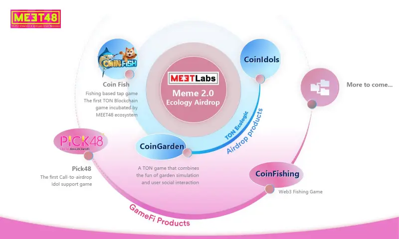 On July 17, MEET48 released its first TON ecologic airdrop product, “CoinFish,” as part of its WEB3.0 incubation ecosystem. On August 8, MEET48 will launch the second TON ecologic airdrop product, “CoinIdols.” MEET48 plans to incubate and release a series of new TON ecologic airdrop products, such as CoinIdols and CoinGarden, at a rate of one per quarter throughout the year. Particularly noteworthy is the innovative play known as “Meme2.0” within the MEET48 ecologic airdrop.