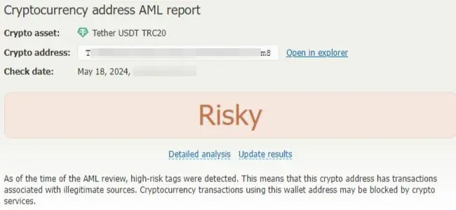 This level of detail helps users avoid potential problems when sending or receiving funds and protects their crypto assets. The service also provides clear recommendations based on known risk flags, empowering users to make informed decisions.
