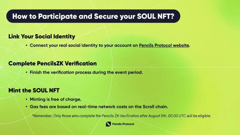 The SOUL NFT campaign is currently being promoted in collaboration with Trusta Labs, Galxe, and others. Users can also unlock additional rewards by participating through Galxe and Trusta Labs’ event portals. Details about incentives from ecosystem partners will be updated regularly and shared on Pencils’ official X account.