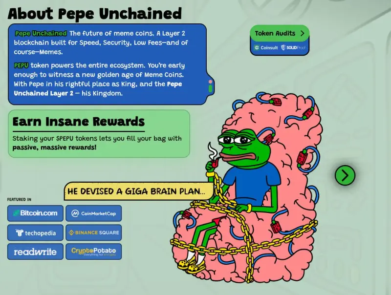 Pepe Unchained is a cryptocurrency project that combines meme coin elements with Layer-2 technology on the Ethereum blockchain. Through its Pepe Chain network, the project aims to offer faster transactions and lower fees, while also providing a staking program for PEPU holders.