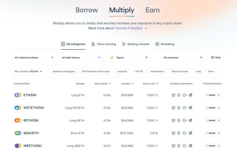 Spark is one of the most used DeFi lending protocols, offering borrowing and lending opportunities with a total market size of almost 4B. Pairing it with Summer.fi’s smooth and user-friendly platform, users can access top-notch strategies without hassle.