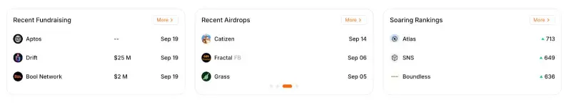 Beyond referencing hot rankings or sentiment indicators such as the “Hot Index Trend (24h),” users can access regularly updated sub-lists of recent financings and project developments to avoid missing key events.